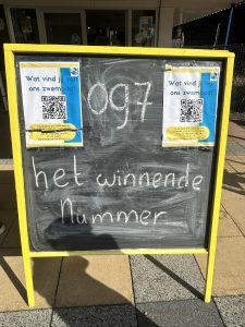 Nou, dit was dan écht het einde van het zwemseizoen. De eigenaar van het winnende lot meldde zich gelukkig, dus onze voorzitter Erik reikte de